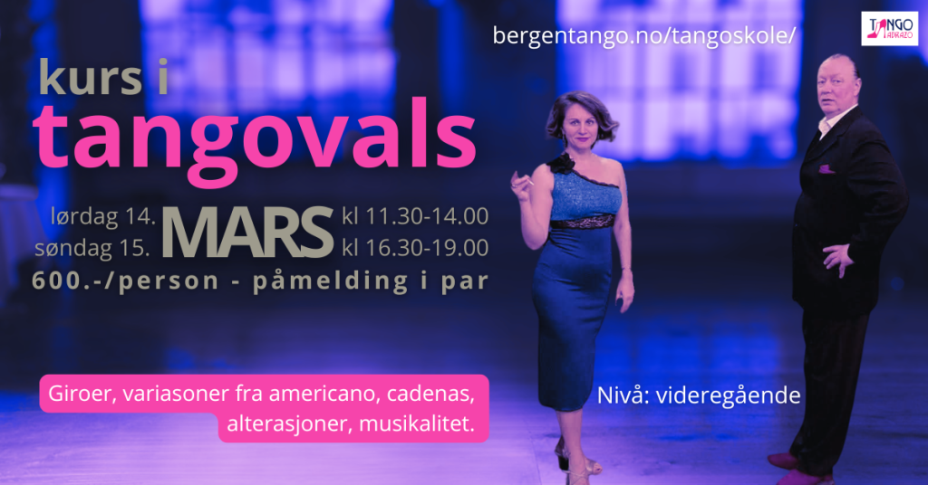 - Temakurs: Grunnteknikk VI – gulvkontakt & hofter, dissosiasjon & pivot, abrazo & overkropp, musikalitet – hvordan sette sammen puslespillet