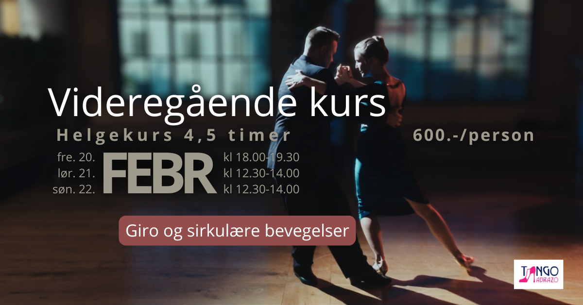 På dette kurset begynner vi å se på sirkulære bevegelser! Sirkulære bevegelser i tango er ikke bare veldig gøy å danse, med masse muligheter for improvisasjon, de er også fine å ha hvis rondaen/dansegulvet stopper litt opp og vi må bruke den lille plassen vi har. Vi skal først og fremst lære grunnteknikk for giro, men vi vil introduserer flere mindre sirkulære bevegelser på veien dit, sånn at du forhåpentligvis har flere gode muligheter når du vil ta de sirkulære bevegelsene med inn i tangoen din etter kurset!